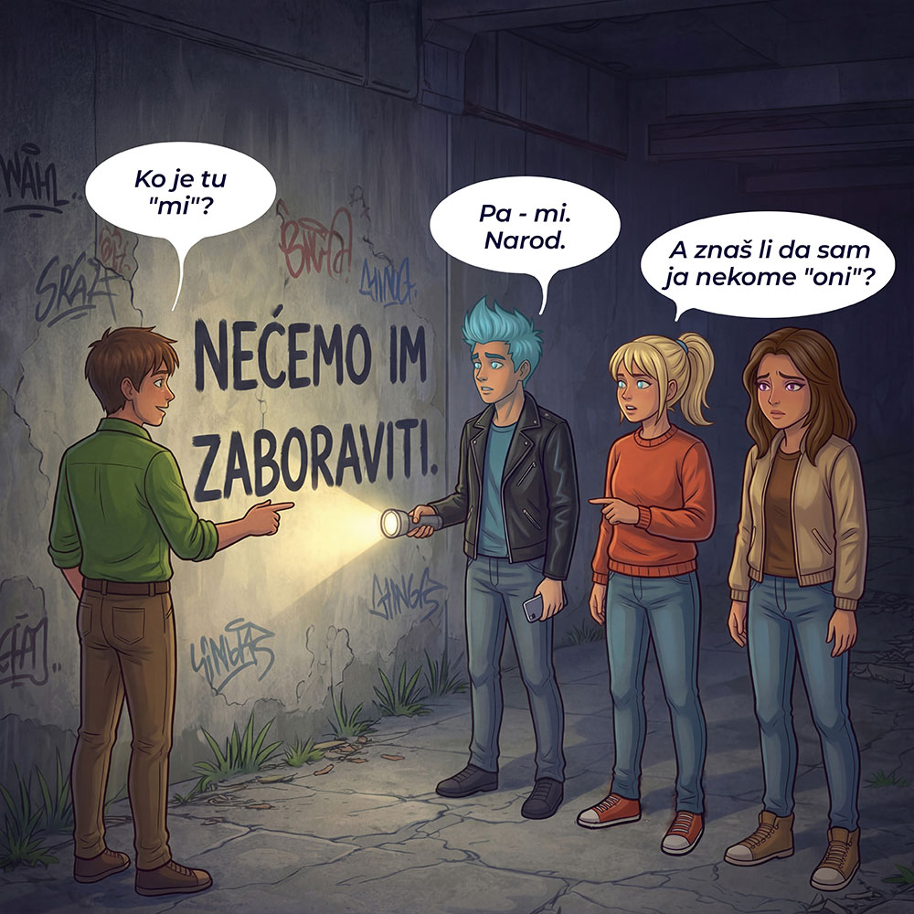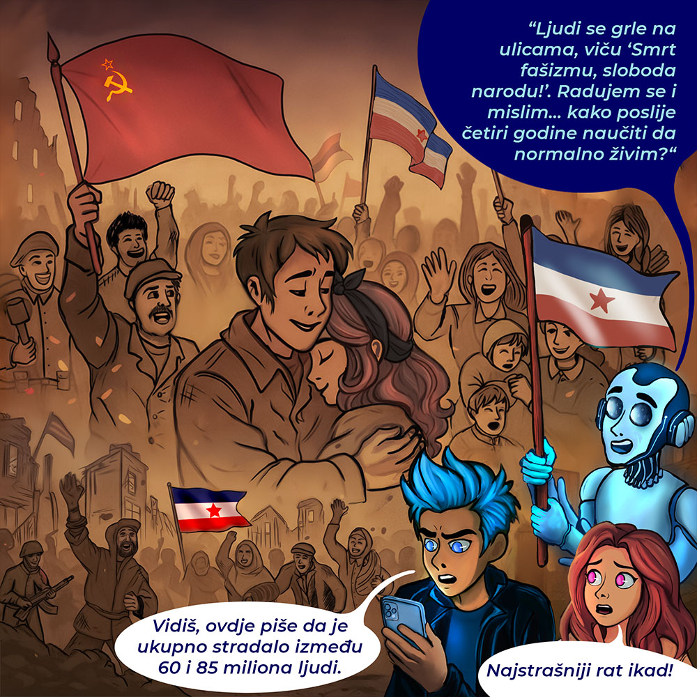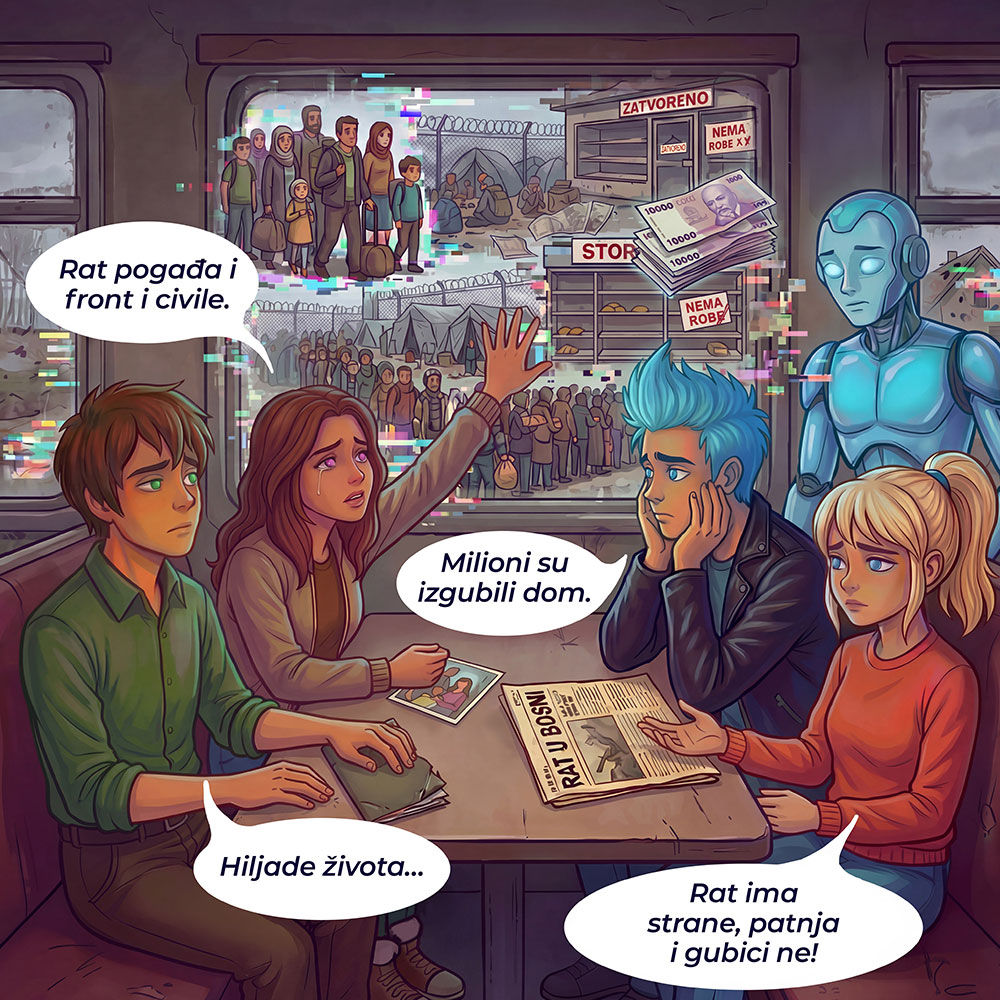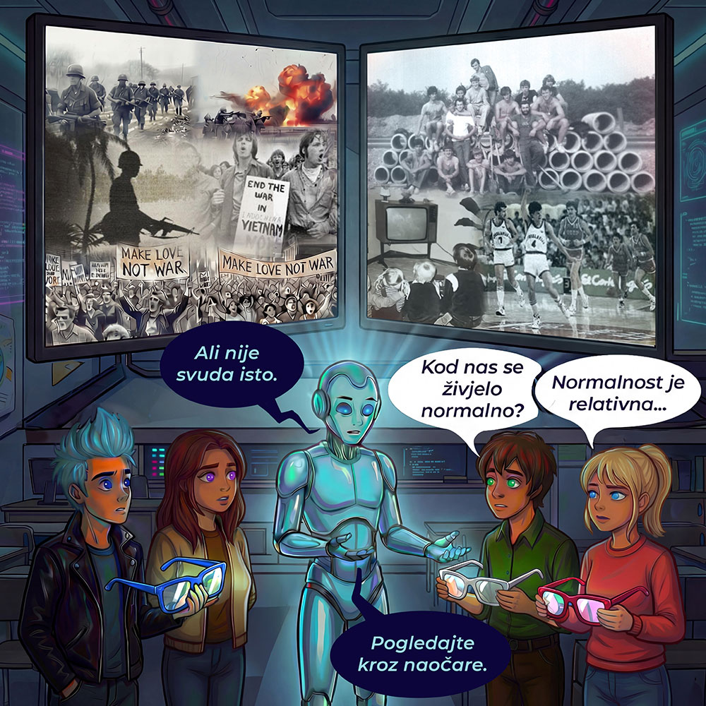 U ovom stripu, naši učenici prate tanku nit solidarnosti koja se provlačila kroz najmračnije trenutke istorije. Izvan naslova o ratovima i granicama, oni otkrivaju priče o uzajamnoj pomoći i zajedničkoj ljudskosti koje su prevazilazile nacionalne i ideološke podele. Ali, da li je solidarnost prirodni ljudski instinkt ili krhki izbor koji moramo iznova donositi? Možemo li ponovo otkriti snagu zajedništva u svetu koji nas često uči da smo ostavljeni sami sebi?