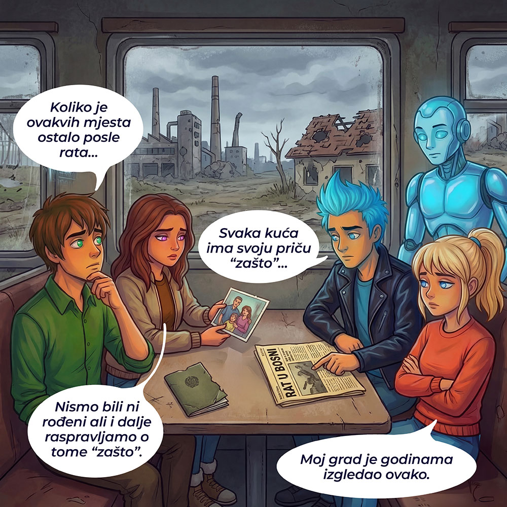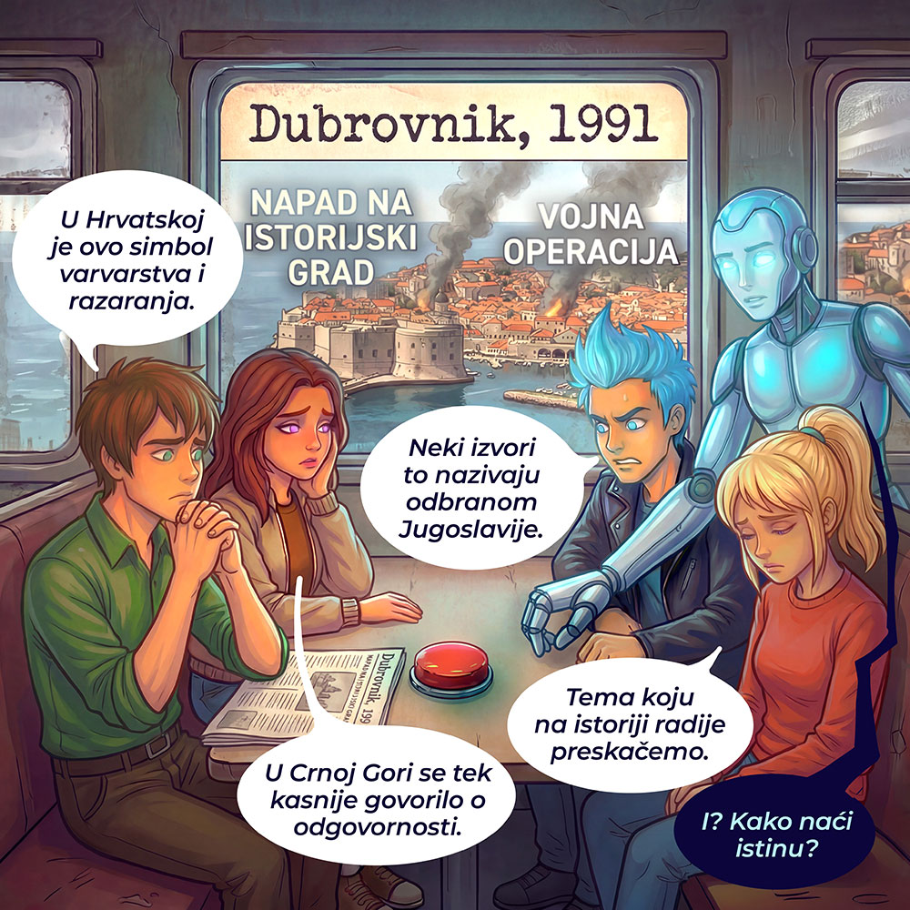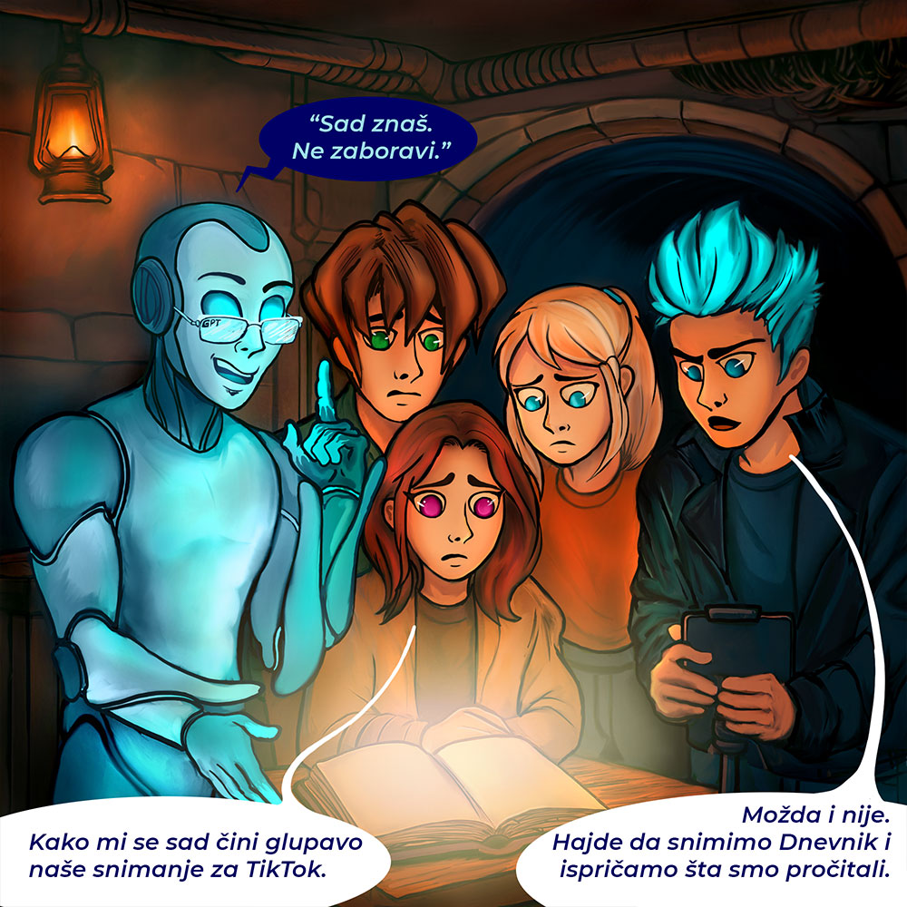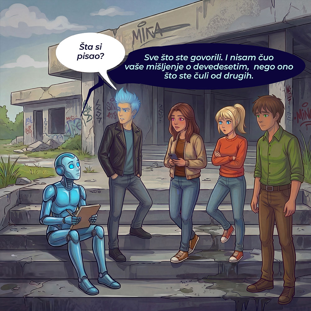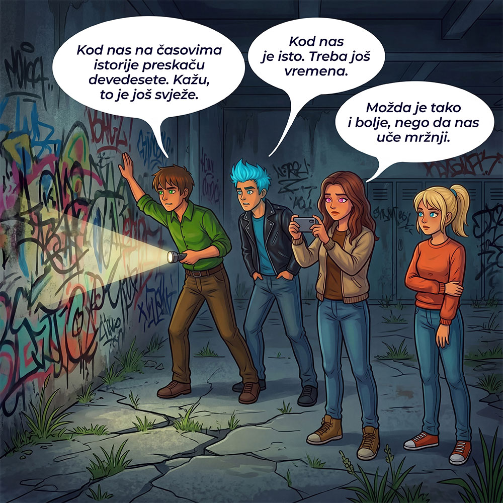 U prvom stripu pratimo učenike koji uz pomoć AI alata istražuju Osmansko carstvo. Tehnologija im otvara nova vrata razumevanja istorije — ali ne bez rizika i pitanja. Kako prepoznati granicu između korisnog alata i pojednostavljene interpretacije prošlosti?