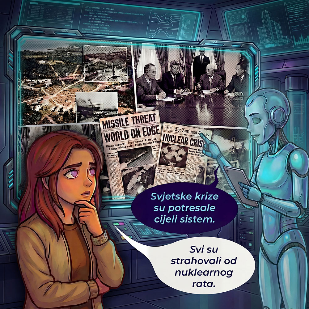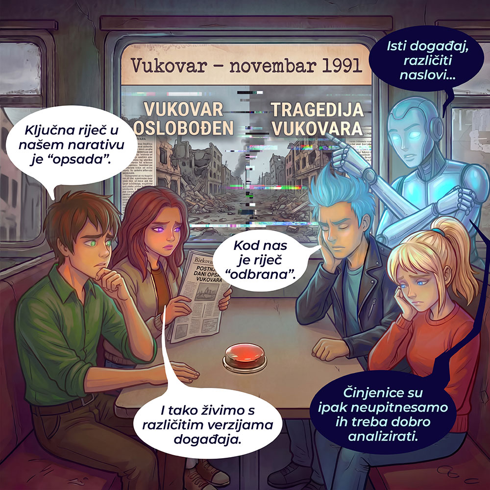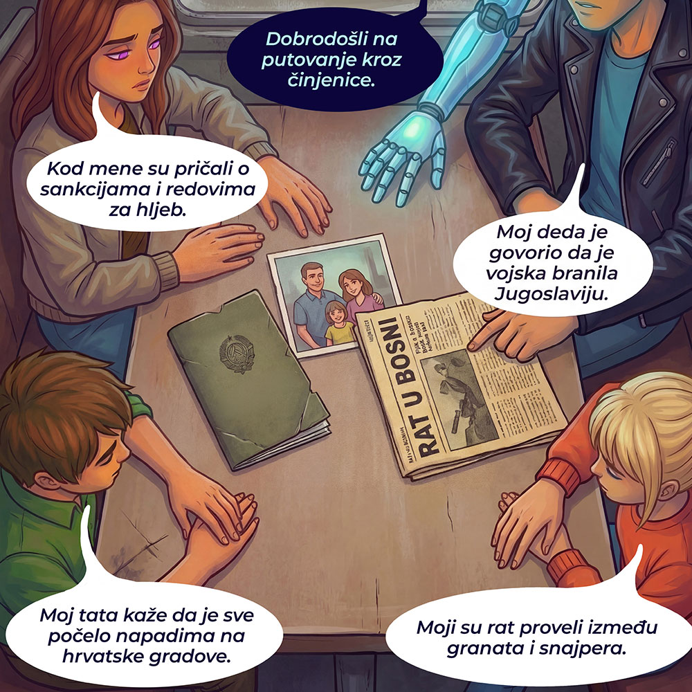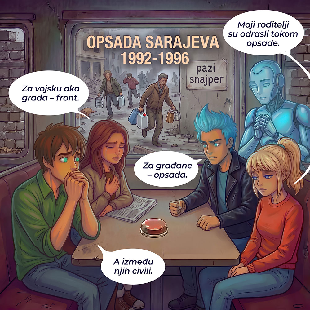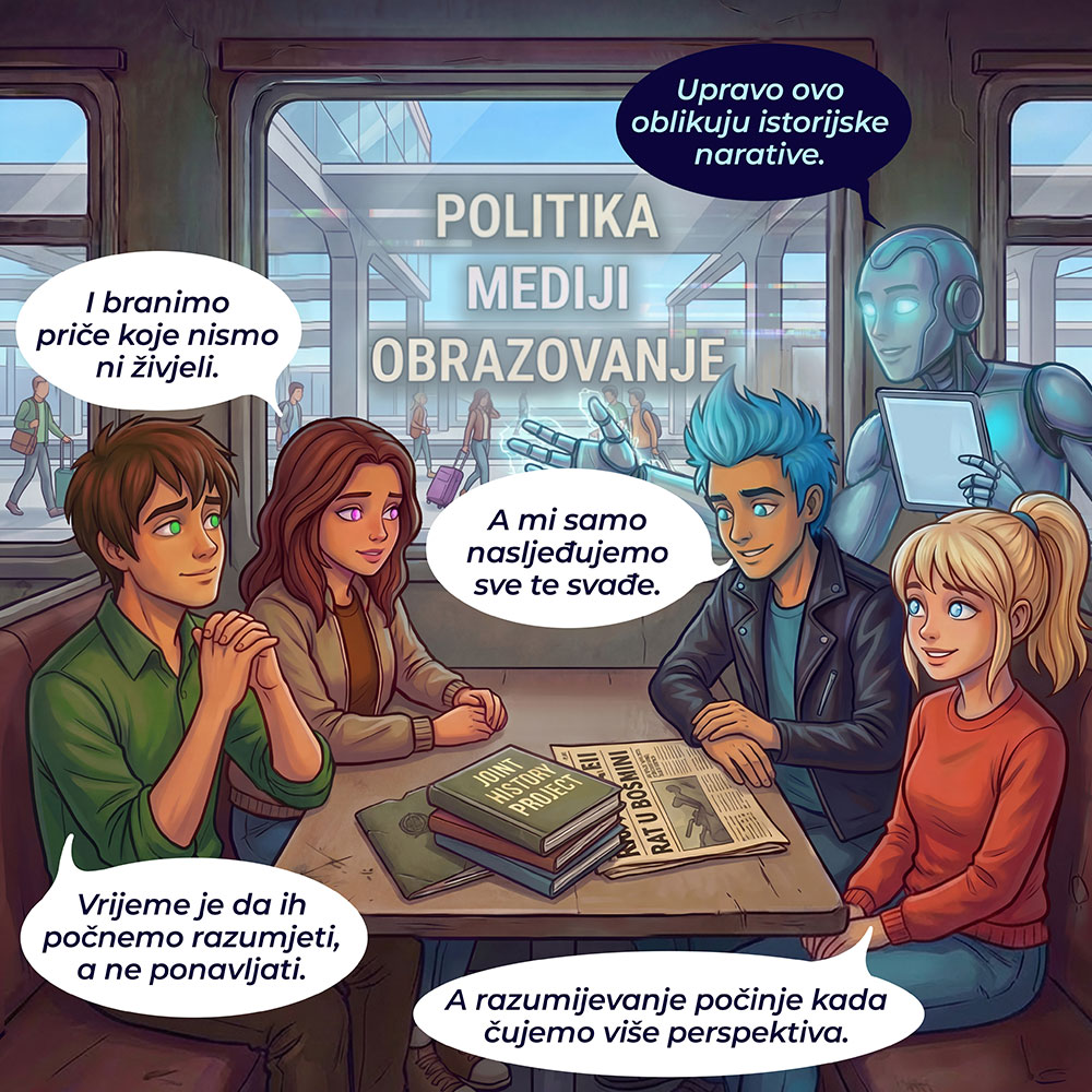U prvom stripu pratimo učenike koji uz pomoć AI alata istražuju Osmansko carstvo. Tehnologija im otvara nova vrata razumevanja istorije — ali ne bez rizika i pitanja. Kako prepoznati granicu između korisnog alata i pojednostavljene interpretacije prošlosti?