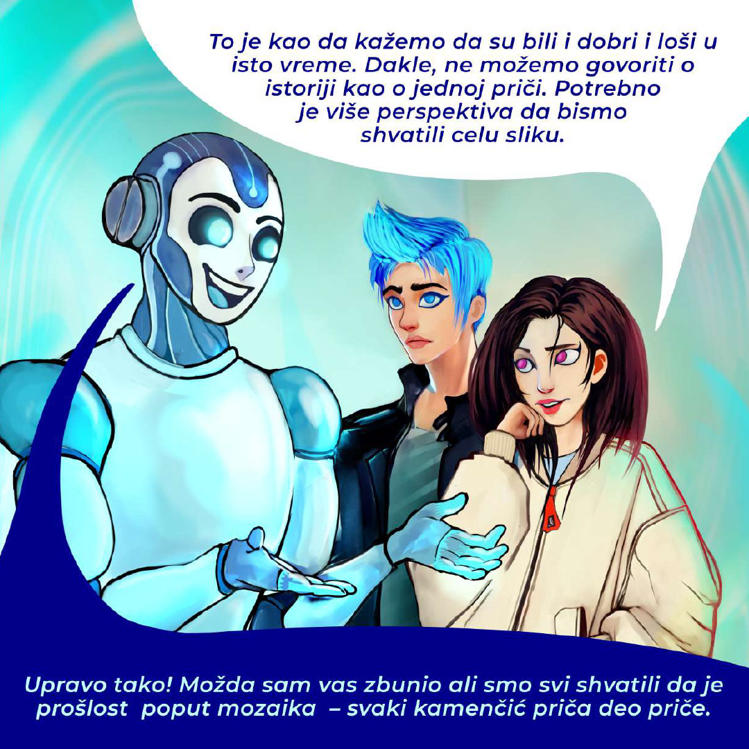 U prvom stripu pratimo učenike koji uz pomoć AI alata istražuju Osmansko carstvo. Tehnologija im otvara nova vrata razumijevanja historije – ali ne bez rizika i pitanja. Kako prepoznati granicu između korisnog alata i pojednostavljene interpretacije prošlosti?