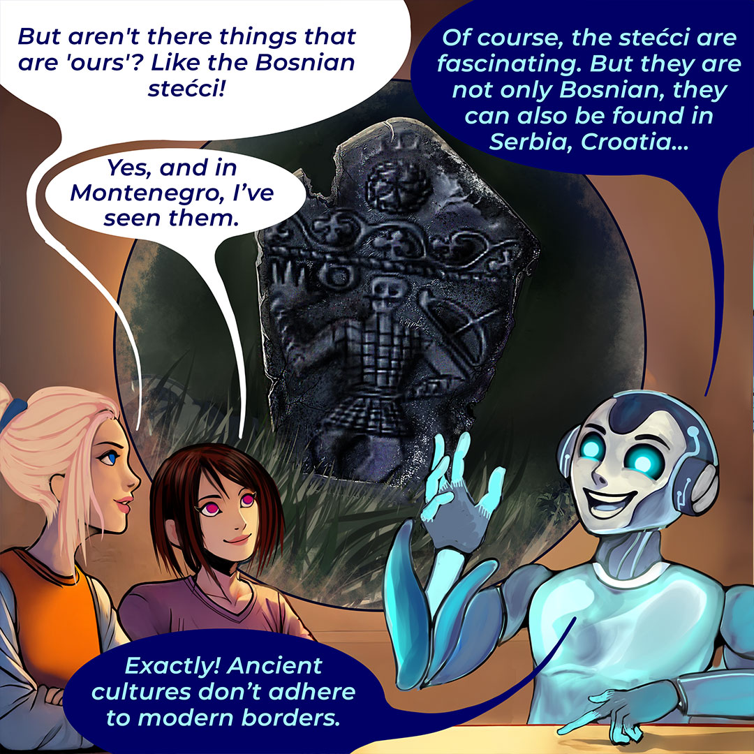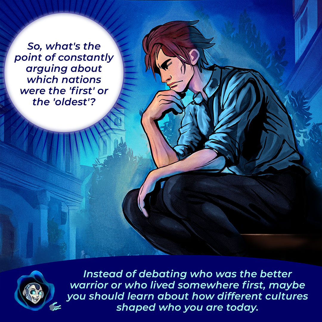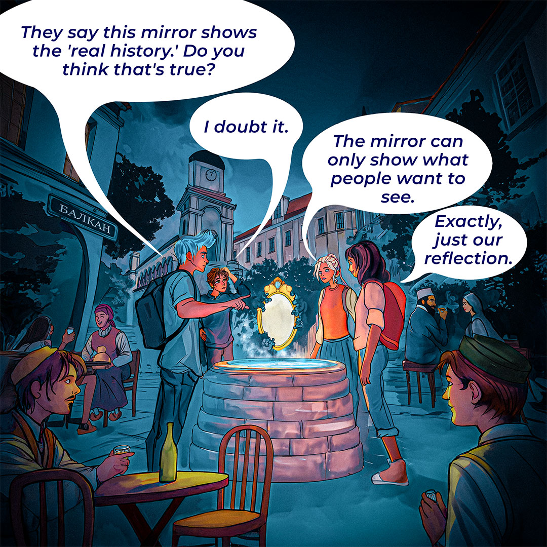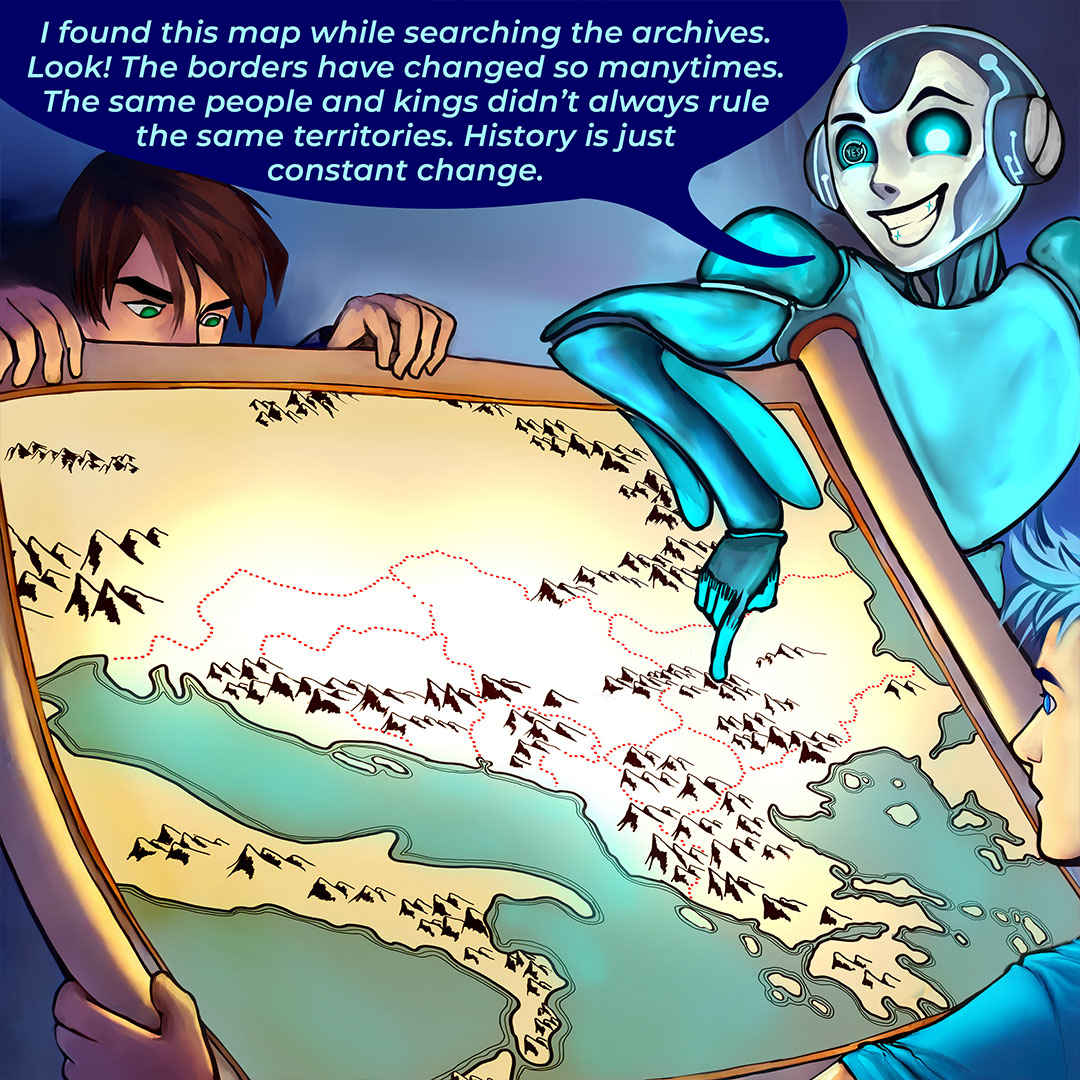 Στο πρώτο κόμικ παρακολουθούμε μαθητές που εξερευνούν την Οθωμανική Αυτοκρατορία με τη βοήθεια εργαλείων τεχνητής νοημοσύνης. Η τεχνολογία ανοίγει νέες πόρτες στην κατανόηση της ιστορίας, αλλά όχι χωρίς κινδύνους και ερωτήματα. Πώς μπορούμε να αναγνωρίσουμε τη λεπτή διαφορά ανάμεσα σε ένα χρήσιμο εργαλείο και σε μια υπεραπλουστευμένη ερμηνεία του παρελθόντος;